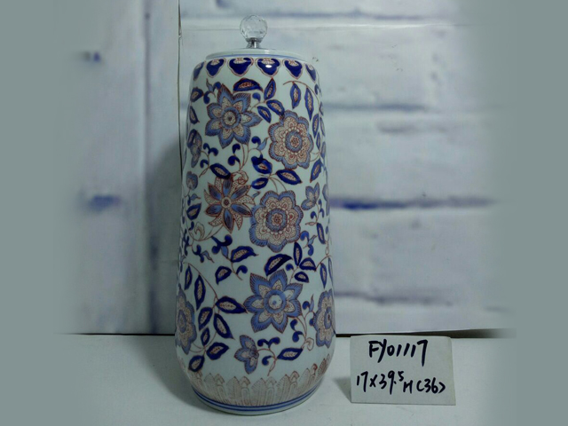 青花瓷红花罐子