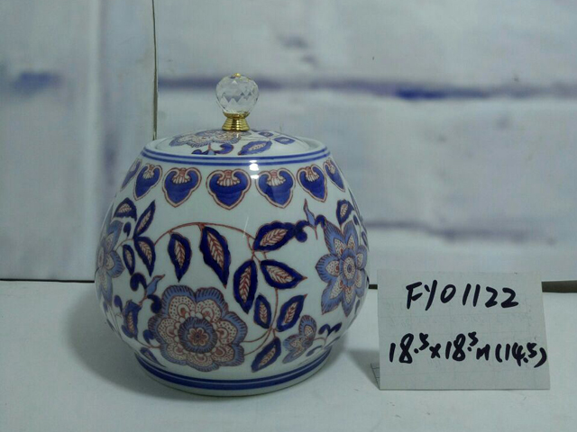 青花瓷花叶罐子