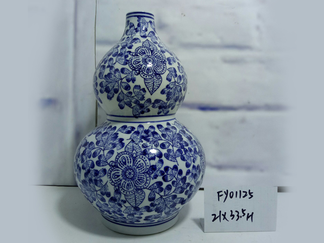 青花瓷花叶葫芦瓶