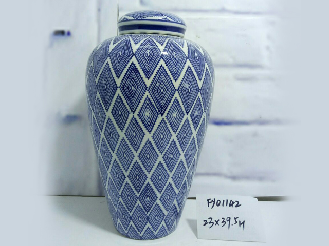 青花瓷菱形罐子