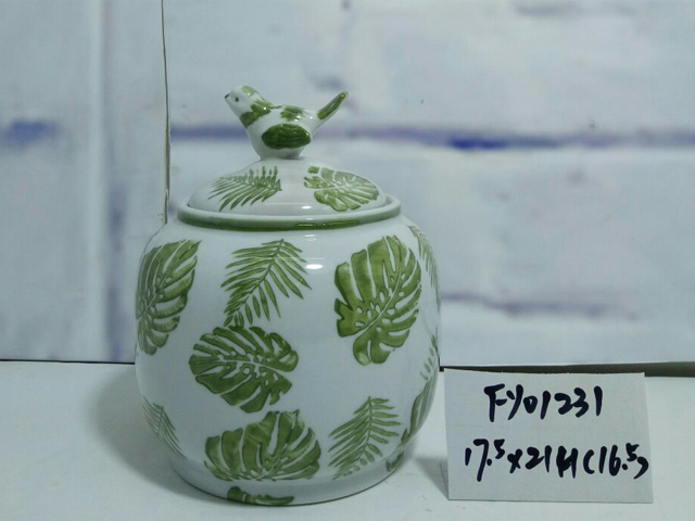 青花瓷绿叶罐子